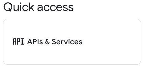 You will be directed to the project's Welcome page. In the Quick Access section, click APIs & Services: